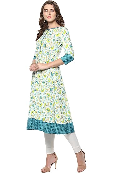 Janasya Women's Multicolor Cotton Floral Print Anarkali Kurta