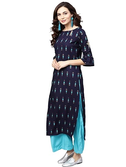 MEERA FAB Rayon Women's Printed Kurta & Palazzo Set